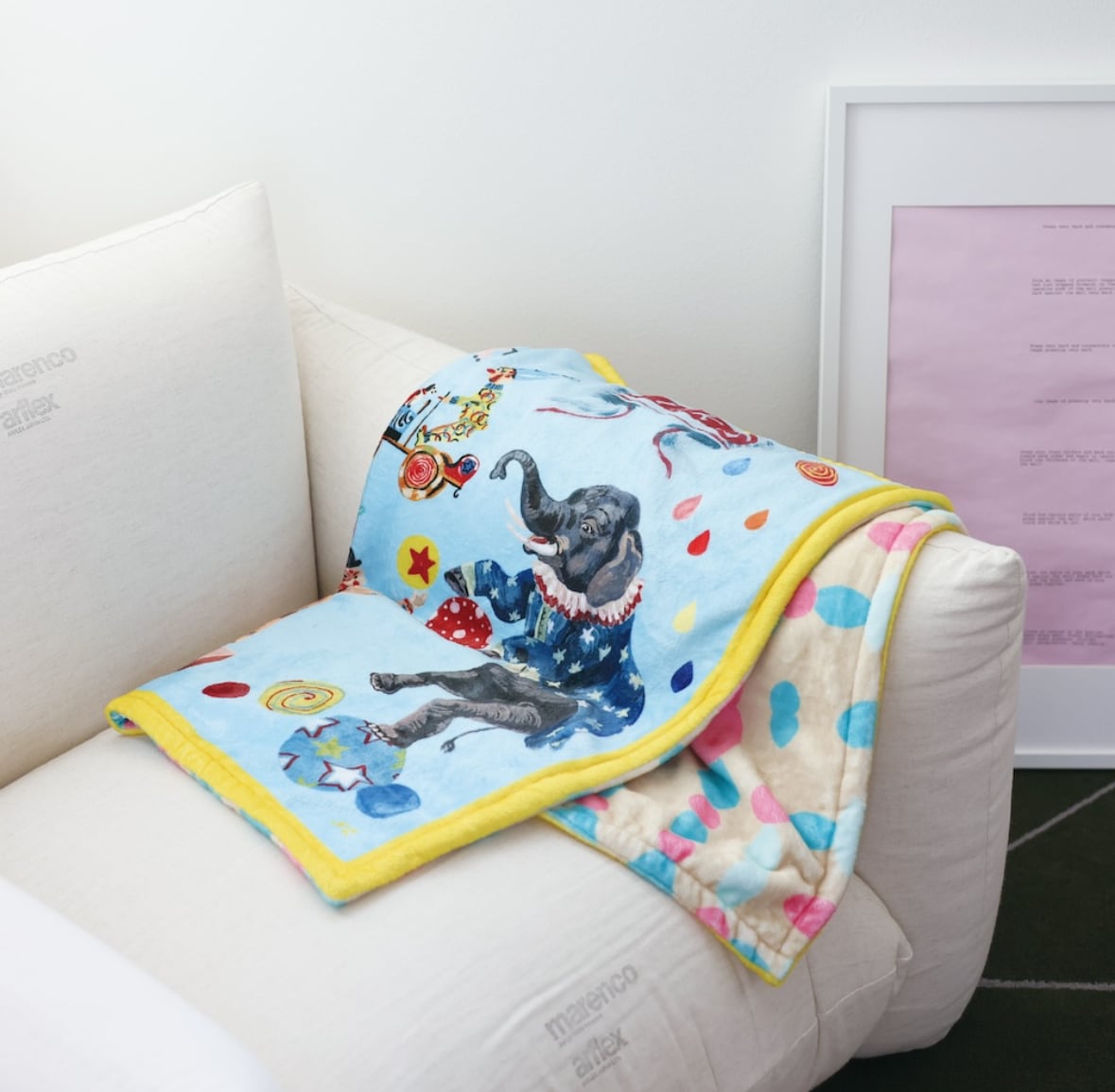 ふわふわとしてなめらかな肌触りのブランケットです。