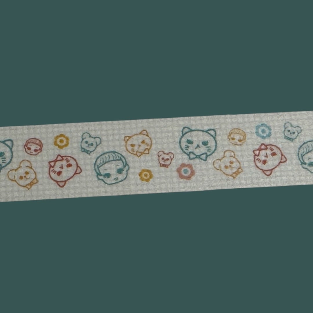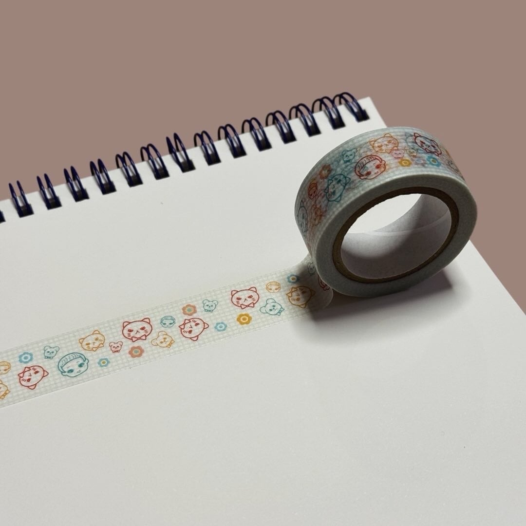 フルネノネコとデコクマが薄いグリーンの格子柄上に散りばめられた大人可愛いマスキングテープに仕上がりました。